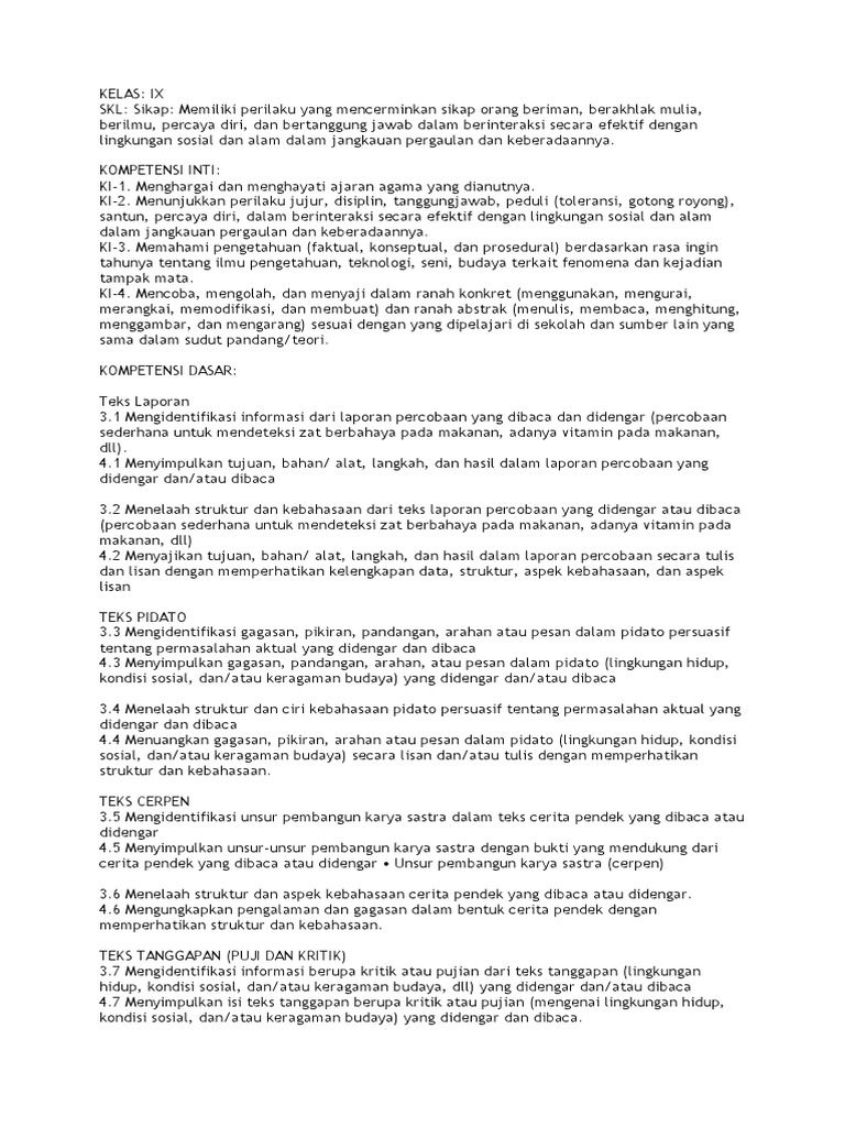 Materi Indikator Soal Level Kognitif No Soal Bentuk Soal 1 34 Menelaah 1 Course Hero from www.coursehero.com Pendidikan bahasa indonesia itu,,,, pendidikan bahasa indonesia adalah salah satu pelajaran yang dapat di praktekan dalam. Dalam pembelajaran bahasa indonesia di kelas 9, terdapat setidaknya enam bab yang mesti dikuasai. Contoh soal dan pembahasan bahasa indonesia. Makalah materi soal bahasa indonesia kelas 9 diterangkan mulai dari pelajaran sd, smp, atau sma min, mts, ma dan smk lengkap dengan contoh demikian pembahasan materi kita kali ini mengenai soal bahasa indonesia kelas 9. Mengidentifikasi informasi tentang pidato persuasif. Kalimat penutup pidato yang benara adalah ? 24 perhatikan kutipan teks pidato persuasif berikut! Teks cerita pendek (menyusun cerita pendek).