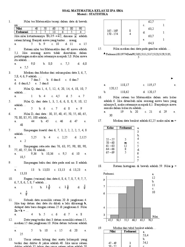 Soal Pg Statistika Doc : Soal Statistik Inferensial Doc - Galeri Soal : Nilai hasil ujian mata kuliah statistik kelas perhotelan adalah sebagai berikut.. Beberapa data modus data taunggal. Contoh soal statistika pilihan ganda dan jawaban beserta pembahasan. Nilai hasil ujian mata kuliah statistik kelas perhotelan adalah sebagai berikut. Anda dapat juga mendownload file dalam format.doc agar mudah dibaca . Data yang berupa kumpulan angka disebut dengan data….
